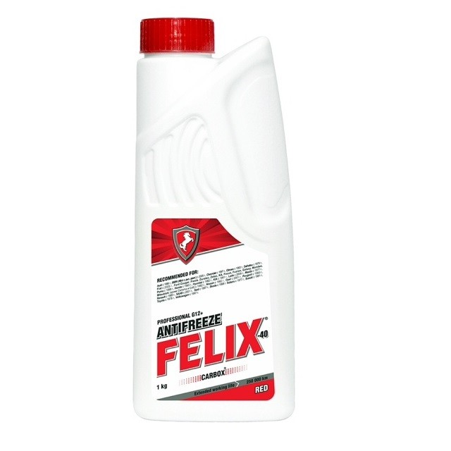 Тосол-Синтез г. Дзержинск. Антифриз FELIX CARBOX-40 G-12+ (1кг) красный имеет множество преимуществ, среди которых можно выделить:антикоррозийные и антипенные свойства; увеличенный срок годности – до 250 тыс. км;не вредит целостности металлических элементов мотора, защищает их от появления ржавчины;не содержит силикатов, фосфатов, а также эффективно противостоит формированию отложений;защищает силовой агрегат от замерзания в экстремальных условиях до -45.
