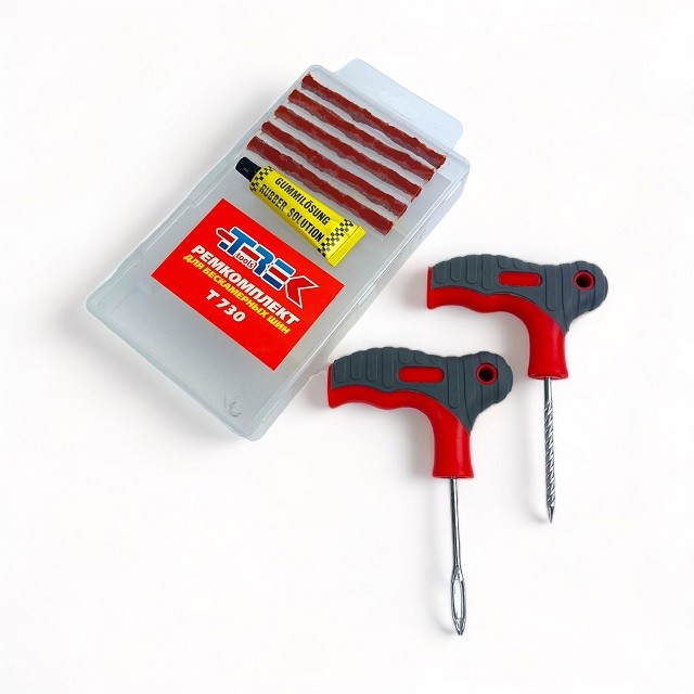 Ремкомплект для шин поможет произвести экстренный ремонт шин. В наборе для ремонта шин представлены инструменты с витым и с игольчатым наконечником, а также 5 штук жгутов сырой резины длиной 10 см. Набор для ремонта бескамерных шин является бюджетным вариантом оказания ремонтных услуг с базовым комплектом необходимых инструментов.