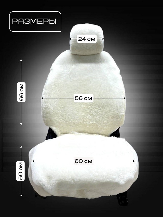 Накидка на переднее сиденье FRONT PREMIUM из натуральной высококачественной овчины без подклады, цвет белый с закрытыми боками и юбкой
