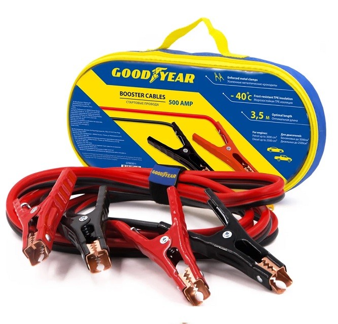Стартовые провода 500А, 3,5м, служат для уверенного пуска холодного двигателя в сильные морозы, а также при полной разрядке аккумуляторной батареи. Набор широко используется для завода легковых и грузовых автомобилей.