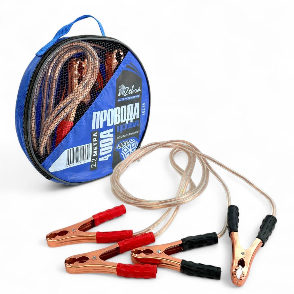 Провода пусковые 400 а - 2,2 м морозостойкие в сумке с силиконовой изоляцией