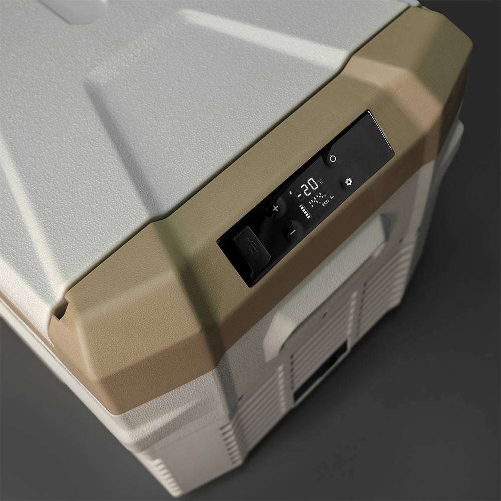 Автохолодильник автоматически поддерживает выбранную температуру от +20 до -20°C. Нужные настройки можно задать с помощью интуитивно понятной панели управления. Она расположена в верхней части корпуса под углом, что исключит случайное нажатие. Тихий высокопроизводительный компрессор, работающий от бортовой сети 12/24 В, и надежная защелка двери позволят долго поддерживать нужную температуру в охлаждаемой камере. Кроме этого, устройство можно подключить к бытовой сети 110/220 В. Длина кабеля 3,5 метра. Гарантия на компрессор 3 года. Высота 514 мм. Ширина 618 мм. Глубина 376 мм.