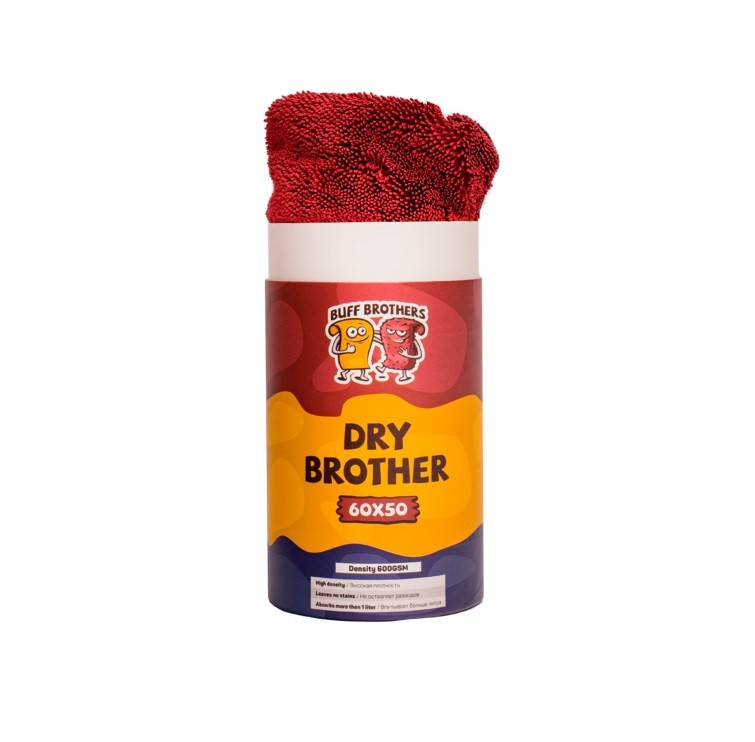 DRY BROTHER – это плотное одностороннее микрофибровое полотенце с плетением, разработанным специально для сушки. Обладает высокими впитывающими свойствами. Может быть использовано для сушки автомобилей, не покрытых гидрофобными составами, так как это полотенце способно впитать воды в 6-7 раз больше собственной массы. DRY BROTHER имеет плотную картонную упаковку, что позволяет удобно и компактно хранить чистый и высушенный аксессуар. Также полотенце может стать отличным вариантом подарка для автолюбителя.