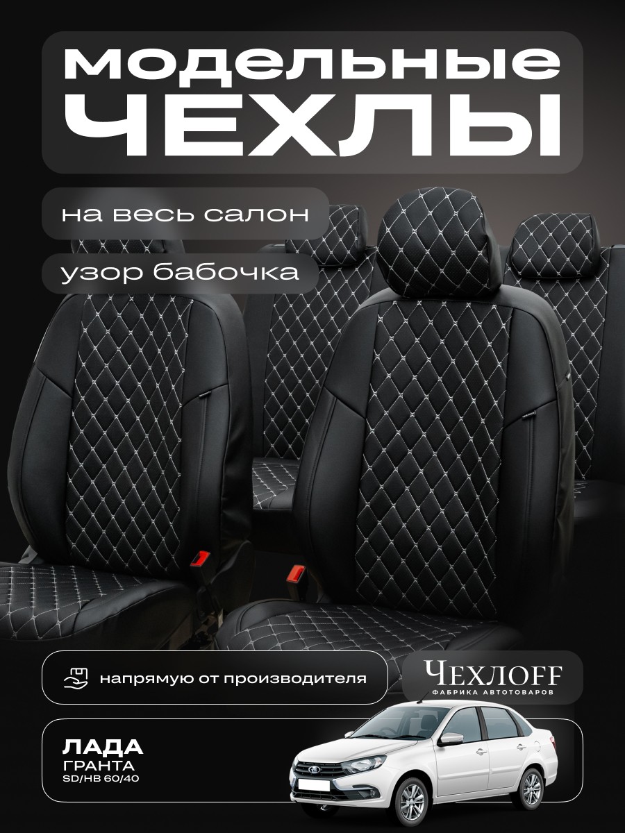 Комплект чехлов на весь салон для ваз - 2190 гранта Норма, FL, 08.2018-рзс, экокожа бабочка, цвет чёрный/белый/чёрный