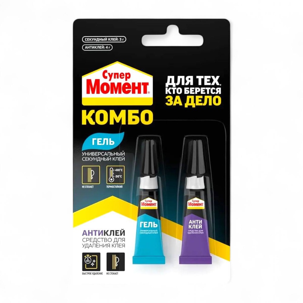 Клей супер комбо гель, универсальный секундный 3 г, антиклей 4 г в блистере
