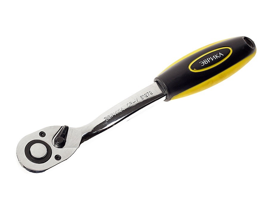 Трещотка с изогнутой резиновой ручкой ЭВРИКА 1/4 72-зубцовая ER-51272 представляет собой удобный инструмент для монтажа и демонтажа крепежных элементов различного вида. Благодаря флажковому переключателю и кнопке быстрого сброса можно быстро сменить направление вращения или оснастку.