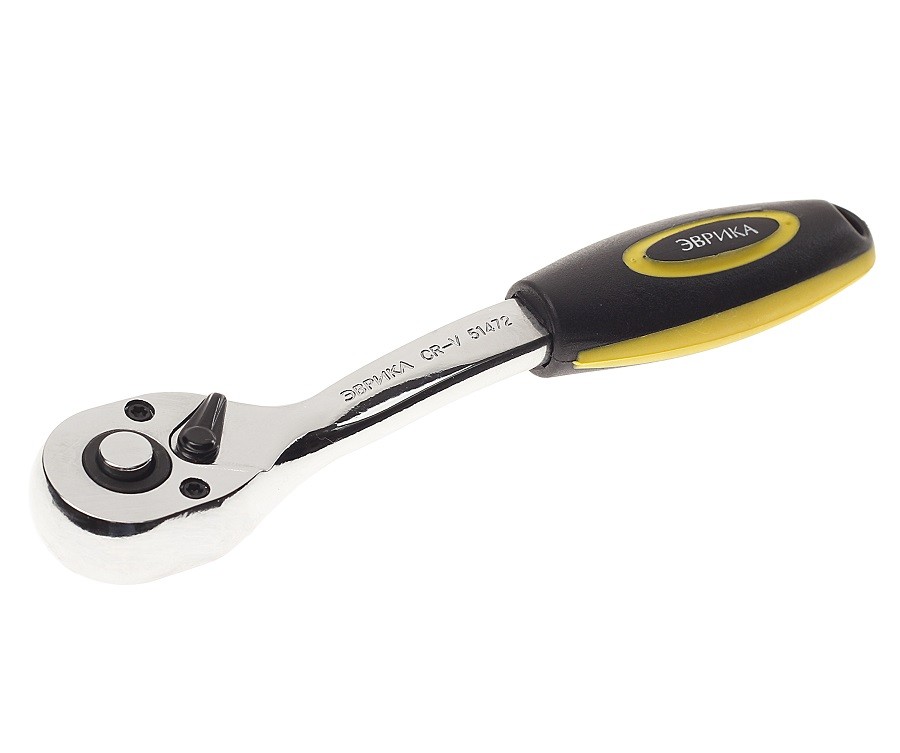 Трещотка с изогнутой резиновой ручкой ЭВРИКА 1/4 72-зубцовая ER-51472 представляет собой удобный инструмент для монтажа и демонтажа крепежных элементов различного вида. Благодаря флажковому переключателю и кнопке быстрого сброса можно быстро сменить направление вращения или оснастку.