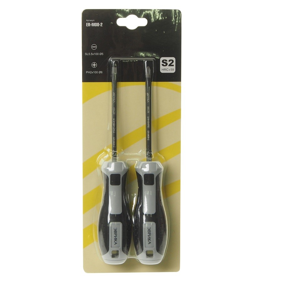 Набор отверток 2 предмета SL5.5x100 ?5, PH2x100 ?6 стержень S2 в блистере