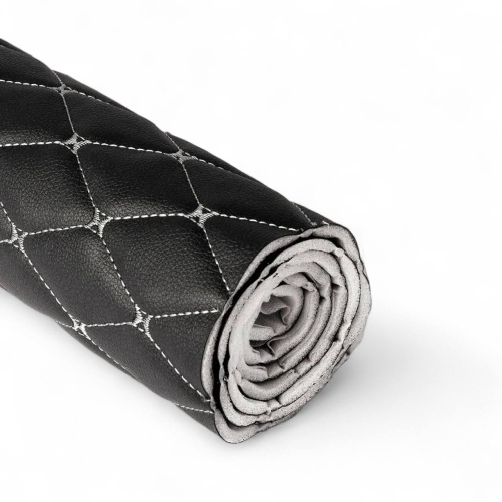 Высококачественный прошитый кожзаменитель на поролоне толщина поролона 5 мм, широко применяемый в автомобильной промышленности, имеющий высокую износостойкость и эластичность. Произведен и прошит на современном оборудовании с ровными строчками и узорами. Идеально подходит для отделки потолка, боковых панелей и дверей.