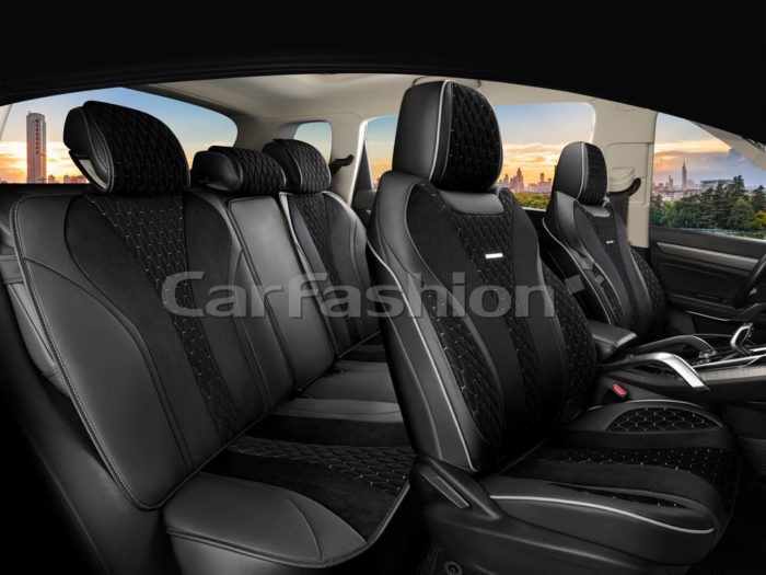 Комплект чехлов на весь салон 5D SHELL PLUS, материал замша, цвет черный/черный/серый