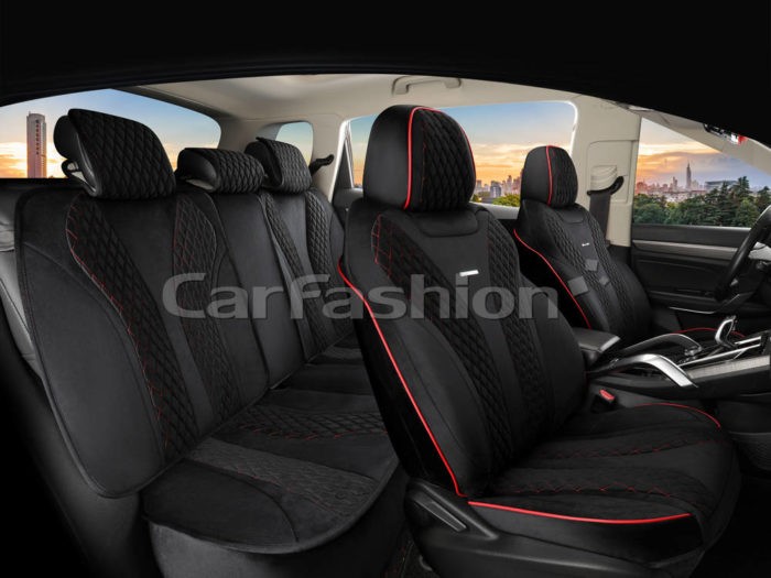 Комплект чехлов на весь салон 5D MACAU PLUS, каркасные, материал велюр, цвет черный/черный/красный