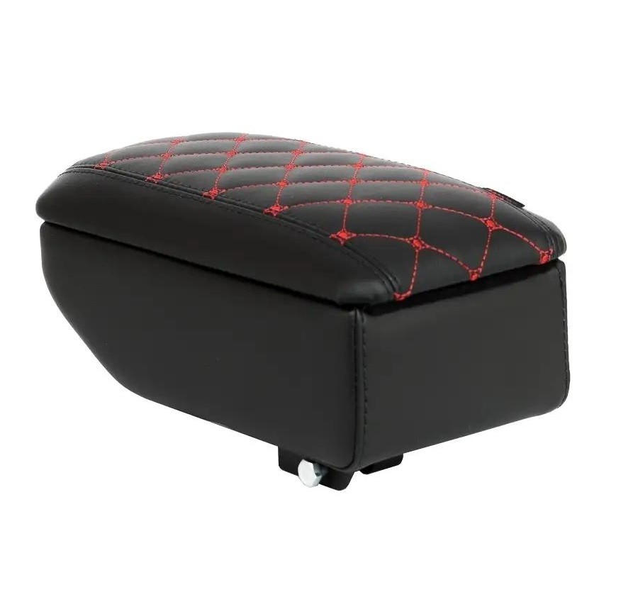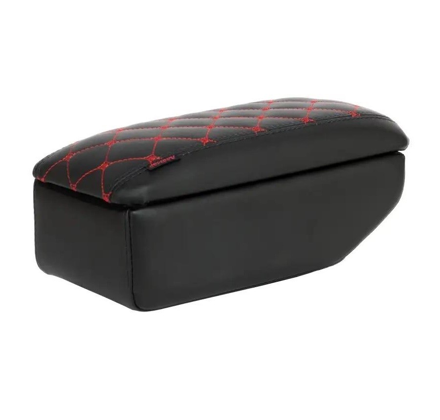 Бокс - подлокотник для лада 1118, красный квадрат, черный, кож.зам.