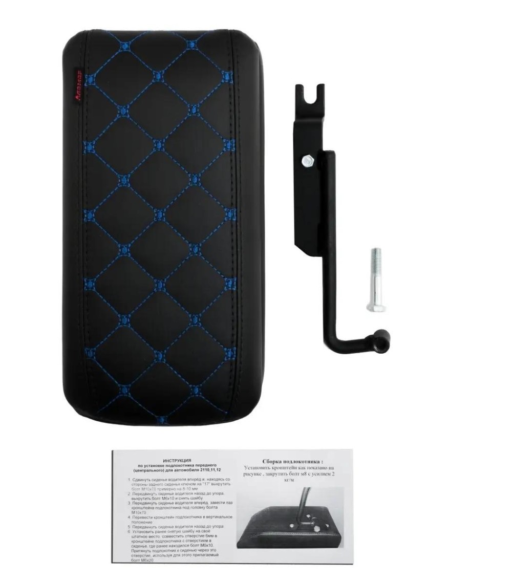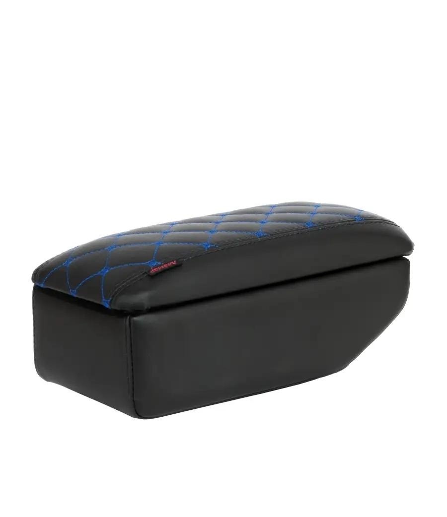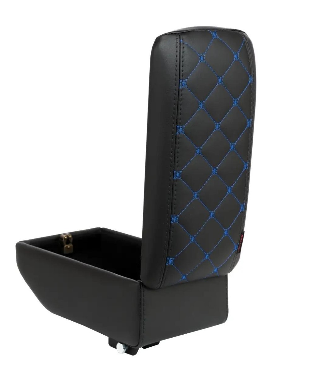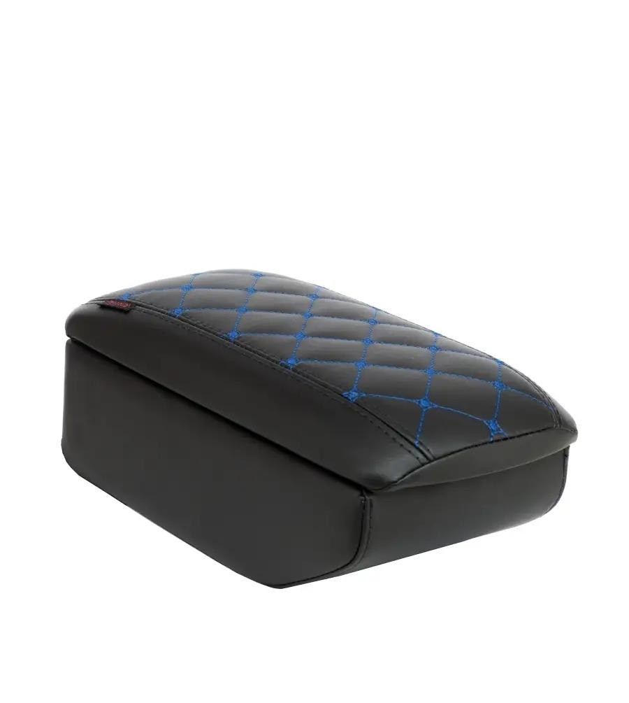 Бокс - подлокотник для лада 2110, синий квадрат, черный, кож.зам.
