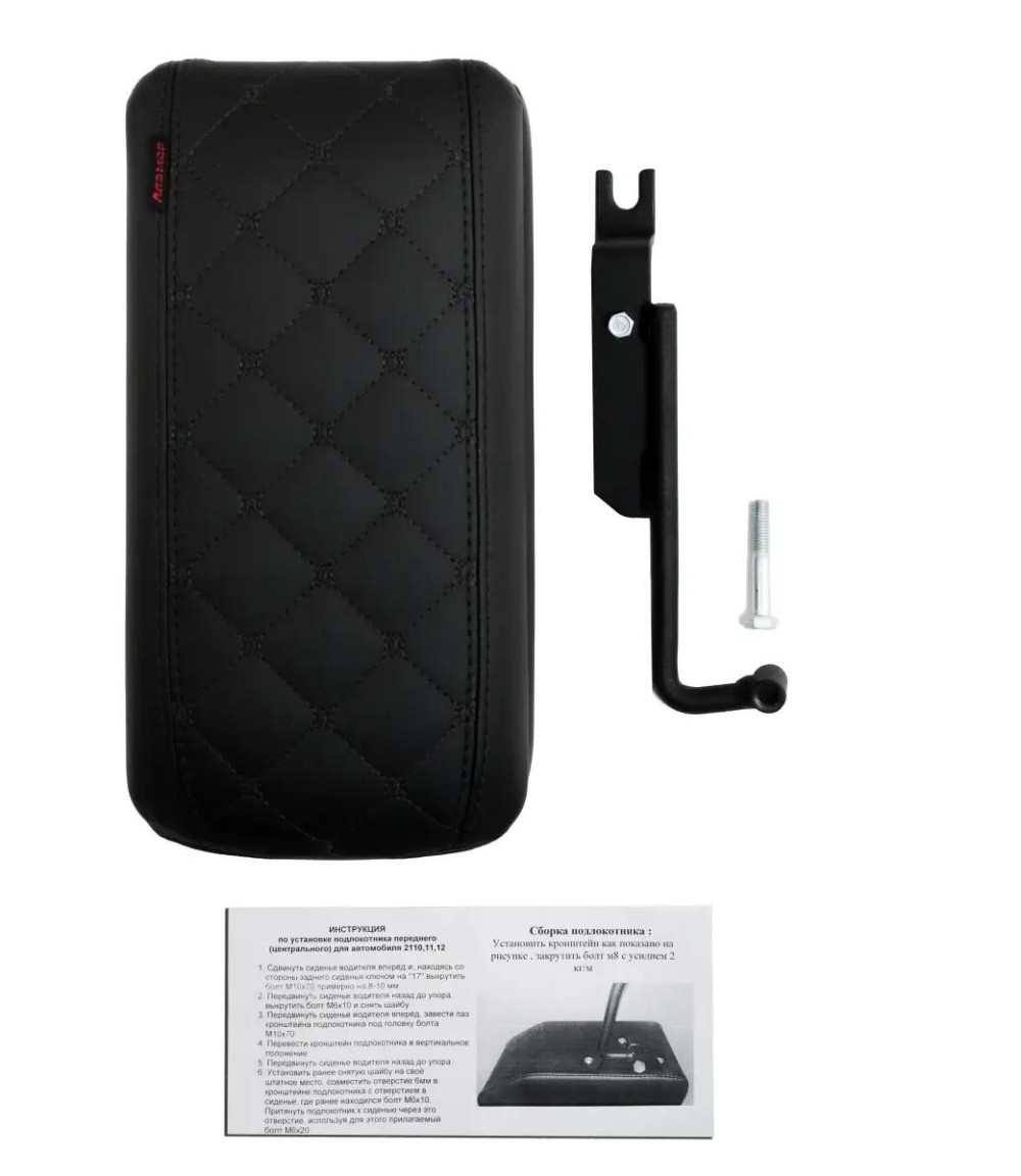 Бокс - подлокотник для лада 2110, черный квадрат, черный, кож.зам.