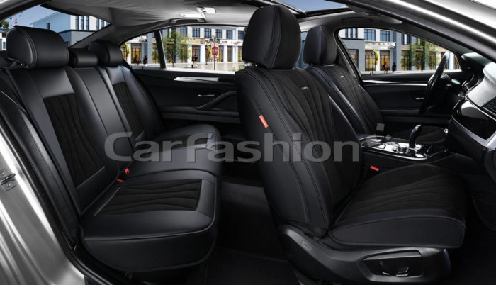 Комплект чехлов на весь салон 5D SHELL PLUS, материал замша, цвет черный/черный/серый