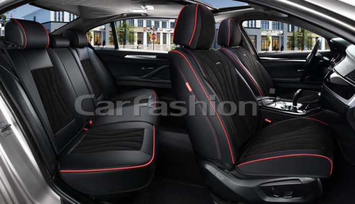 Комплект чехлов на весь салон 5D ARGON PLUS, каркасные, материал ЭкоКожа-замша, цвет черный, строчка черная/красная, кант красный