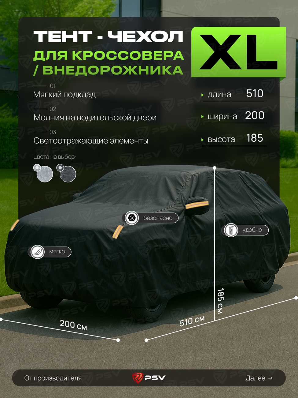 Тент для автомобиля внедорожника с подкладкой и молнией, рамер XL (510*200*185), цвет черный