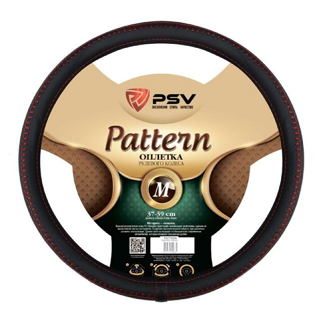 Оплетка из эко-кожи PATTERN Fiber, цвет черный/красный, размер M