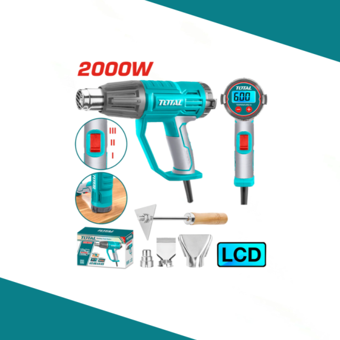 Питание: 220-240 В ~50/60 Гц. Мощность: 2000 Вт. Температура: 50/50-600°C/50-600°C. Расход воздуха: 450/300/450 л / мин. Регулируемая температура. Коллекция включает в себя: 1шт воронкообразная головка. 1шт головка отражателя. 1шт плоская ручка. 1 шт железная скребковая ручка.