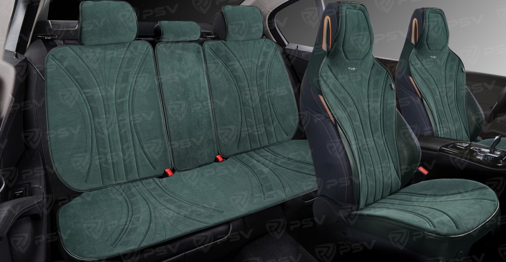 Комплект накидок на весь салон URAGAN PLUS, материал алькантара, цвет зеленый, строчка зеленая, кант зеленый