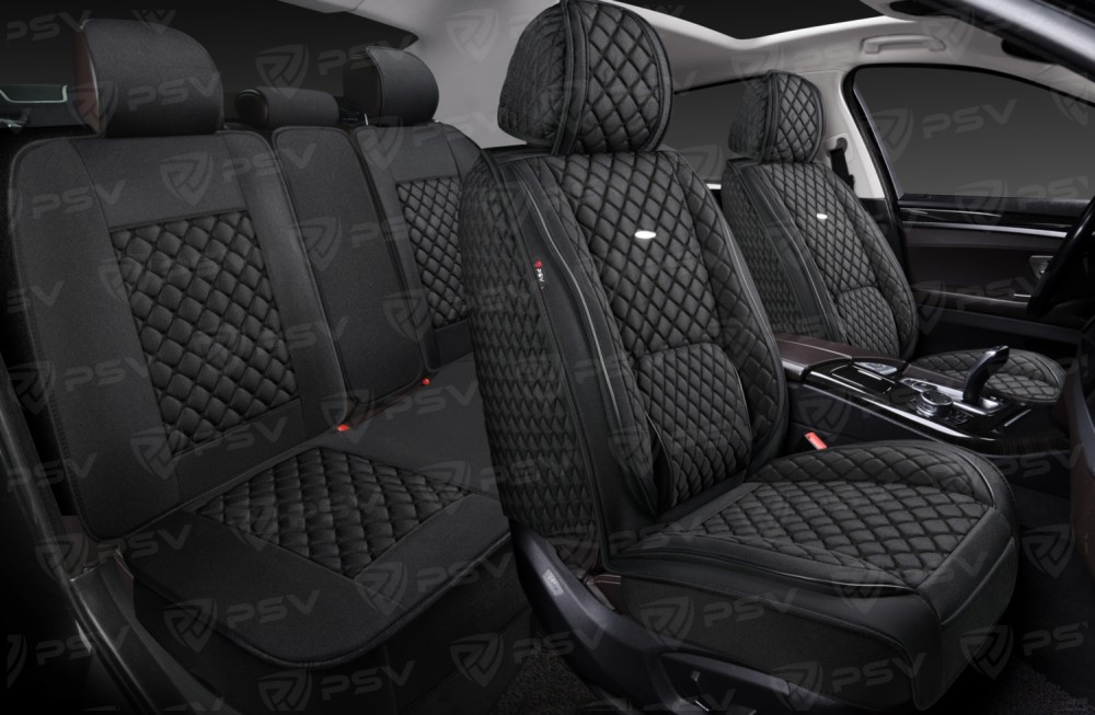Комплект накидок на весь салон 5D Linum PLUS, материал лен, цвет черный, строчка черная
