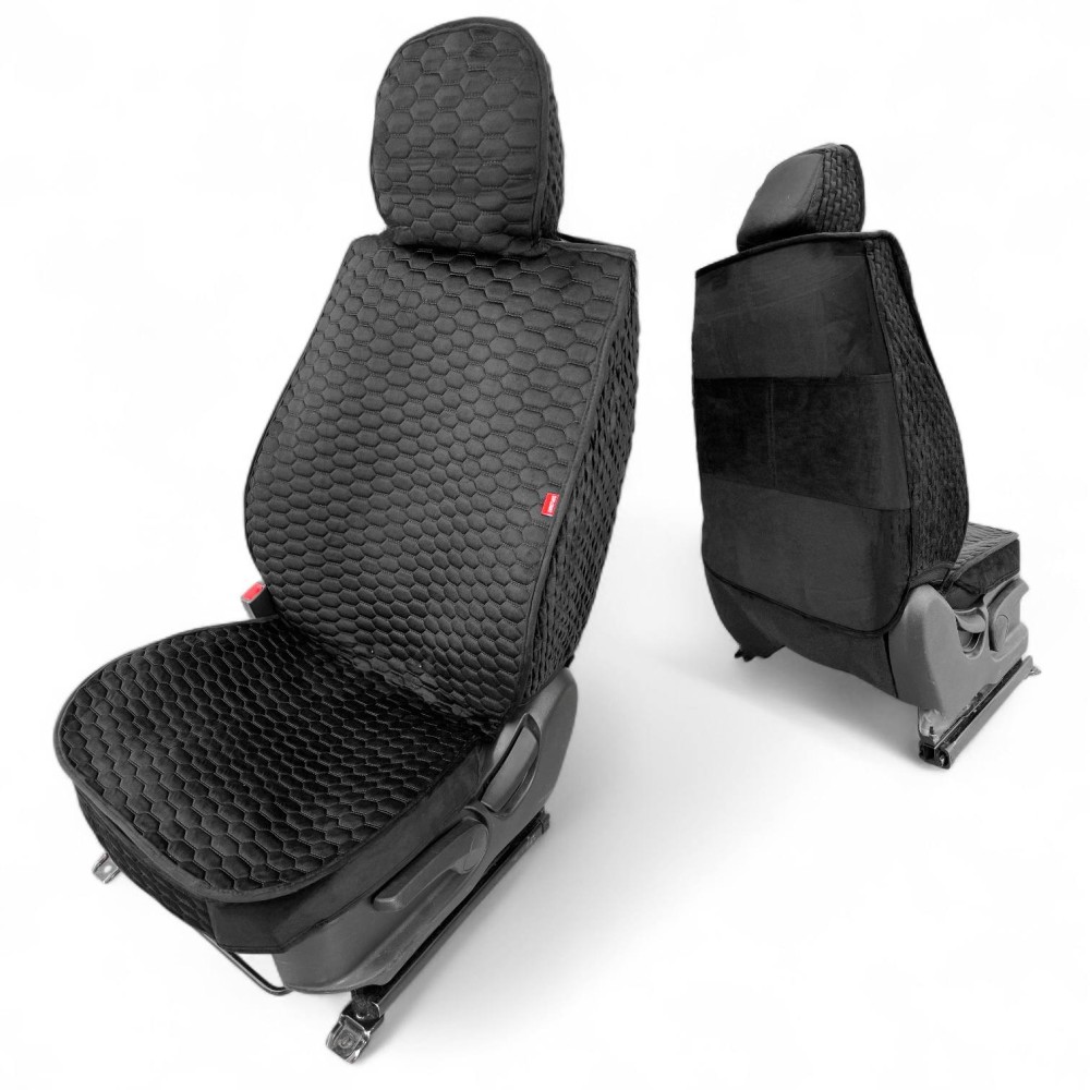 Комплект накидок на весь салон, ткань Велюр с вставками из ЭкоКожи, рисунок сота, спинка из Экокожи, закрытые бока-гармошка велюр, цвет черный, строчка черная, кант черный