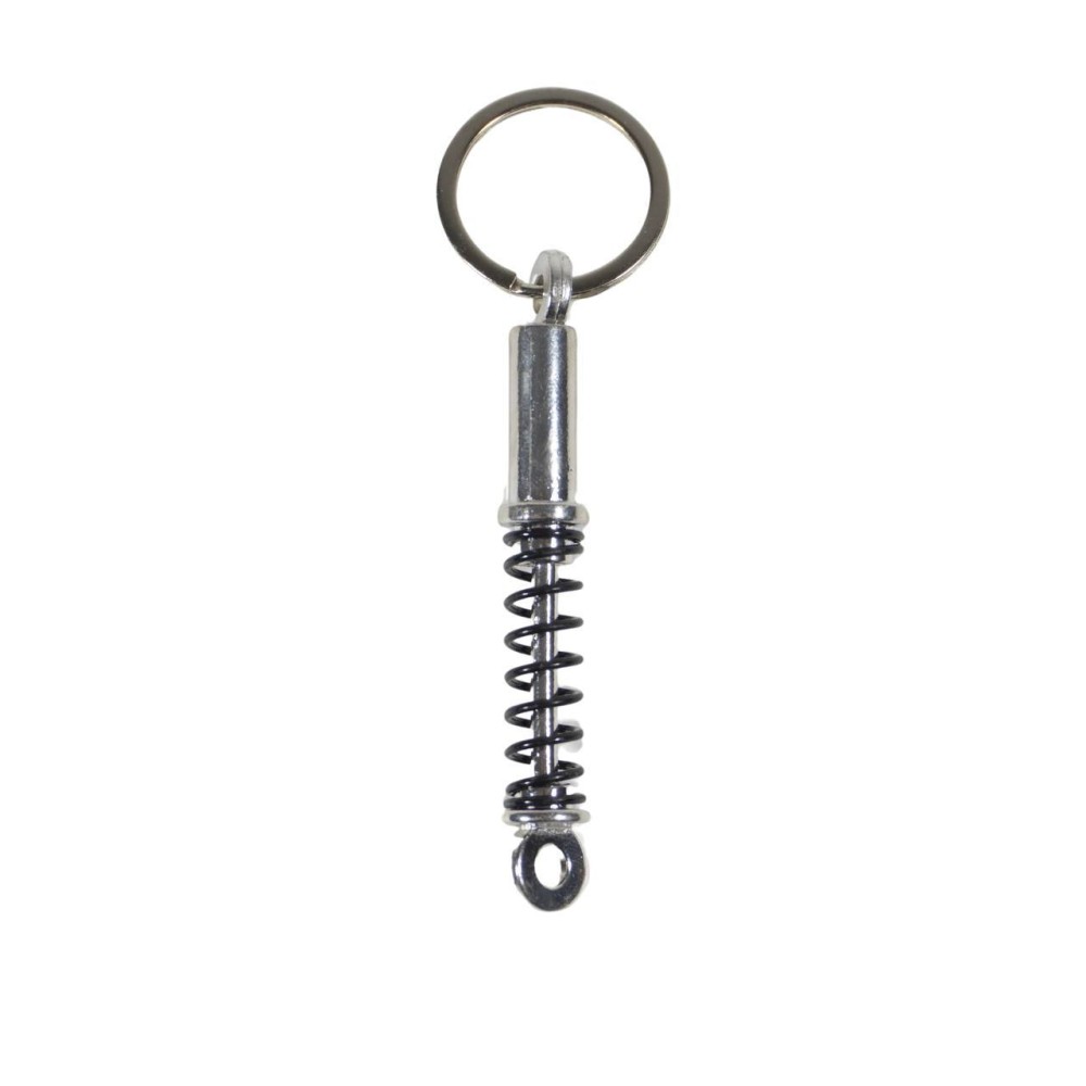 Очень интересный, оригинальный и необычный брелок для ключей. Аксессуар выполнен из качественного хромированного цинкового сплава, которому ни капельки не страшна коррозия. Брелок представляет собой точную копию миниатюрного рабочего амортизатора. Пружина также выполнена из стали, полностью подвижна. Вы спокойно можете сжать ее. Такой брелок станет незабываемым и незаменимым сувениром любому автовладельцу. А компактные размеры позволяют хранить данный аксессуар в любом кармане.