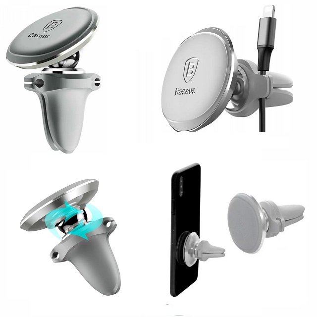 Держатель Baseus Magnetic Air SUGX-A0S выполнен из алюминия, крепиться в дефлектор, имеет компактный и стильный дизайн. Места соприкосновения со смартфоном имеют силиконовые накладки. Держатель вращается на 360 градусов – это позволит выбрать удобное для Вас положение смартфона. Телефон крепиться к держателю с помощью магнитной пластины, которая кладется под чехол или крепиться на двухсторонний скотч. Сбоку есть удобный маленький держатель для кабеля, теперь его больше не нужно искать по всей машине.