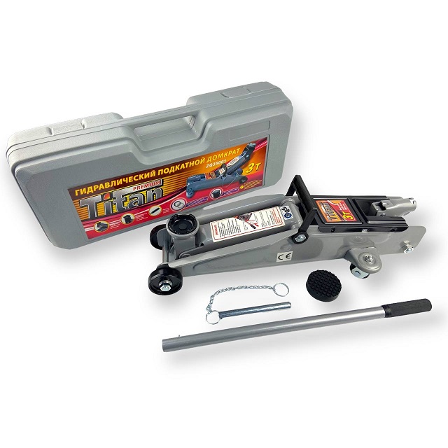 Домкрат гидравлический подкатной 3 т 135 - 385 мм, с фиксатором, в кейсе