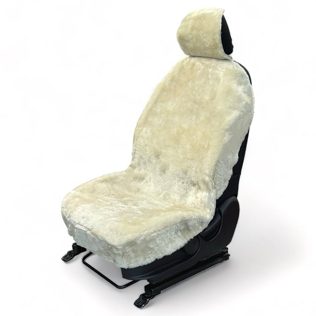 Задайте вопрос о товаре Накидка на переднее сиденье FRONT из натуральной высококачественной ОВЧИНЫ БЕЗ ПОДКЛАДЫ, цвет БЕЛЫЙ с закрытыми боками и передом, размер M