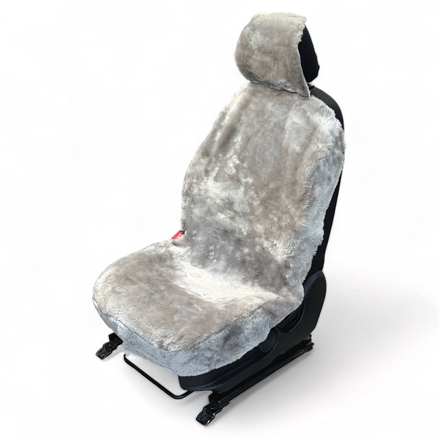 Накидка на переднее сиденье FRONT из натуральной высококачественной овчины без подклады, цвет серый с закрытыми боками и передом, размер M