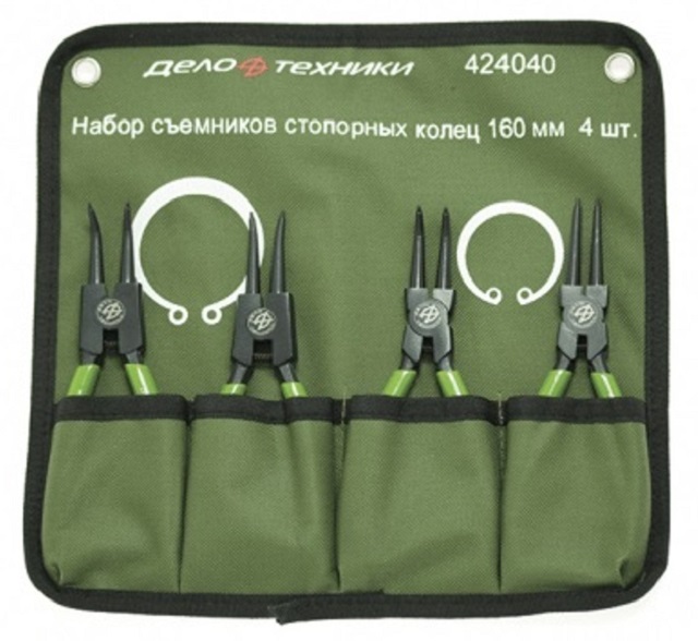 Материал: сталь 31CrV3; Твердость: 43 - 45 HRC; Покрытие: никелирование и спец. лак; Рабочие концы съемника: 160 мм- O1.8 мм; 180 мм- O 2.1 мм; Съемники применяются при монтаже и демонтаже наружных и внутренних стопорных колец. Съемники снабжены возвратной пружиной для более быстрой и удобной работы.