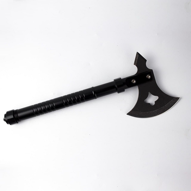 Топор туристический Кельт многофункциональный и компактный. Все детали плотно крепятся друг к другу, создавая ощущение монолитной конструкции в целом без зазоров и люфтов. Топор подойдет для любителей активного и экстремального видов отдыха. Длина топора составляет 40 см, клинок равен 13 см., а его ширина занимает 15,5 см. Рукоятка имеет конусную форму и отверстие под страховочную корду или ремешок. Топор включает в себя следующие орудия и приспособления: топор, лом, открывалка для бутылок, стеклобой, свисток, огниво.