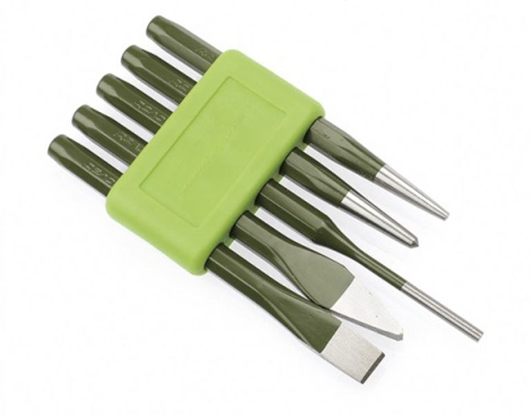 Материал: сталь 60CrV; твердость рабочей части: 52 - 58 HRC; покрытие: спец. эмаль; набор предназначен как для слесарных, так и для строительно - монтажных работ.; зубило 11х125, крейцмейсель 4х125, выколотка 4х150, кернер 4х115, бородок 3х115 мм.