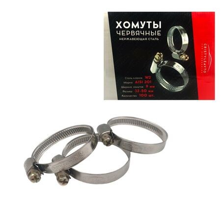 Хомут 32-50мм червячный W2, 9мм нержавейка (упаковка 100шт)