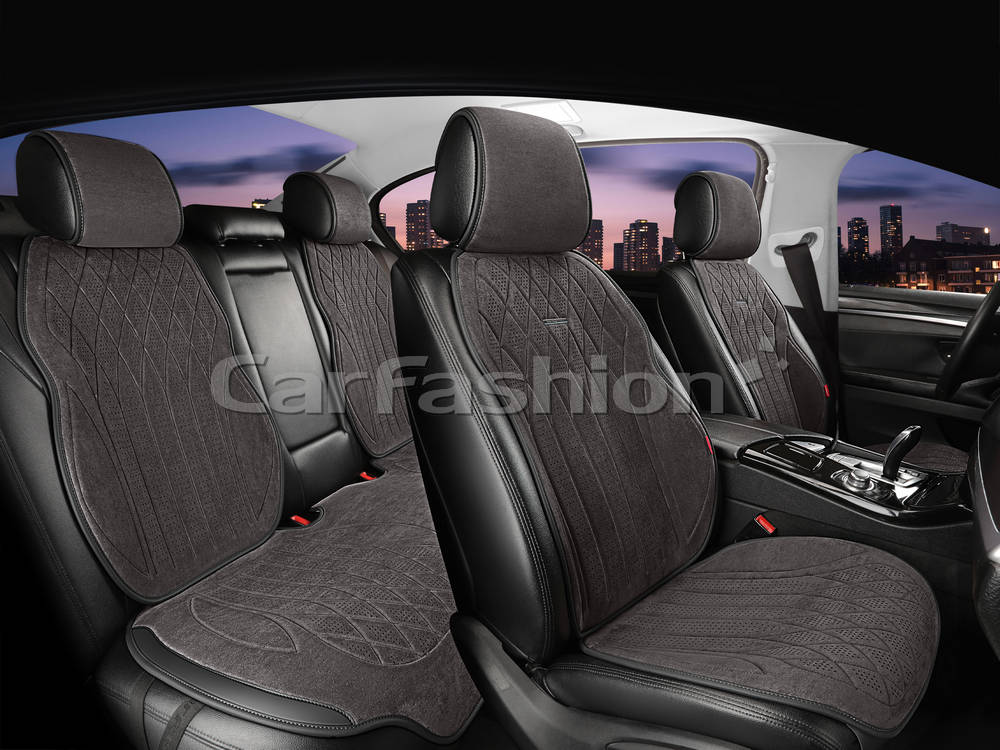 Комплект накидок на весь салон PLUS 2D PEAK, материал замша + экоКожа, цвет серый, строчка серая, кант черный