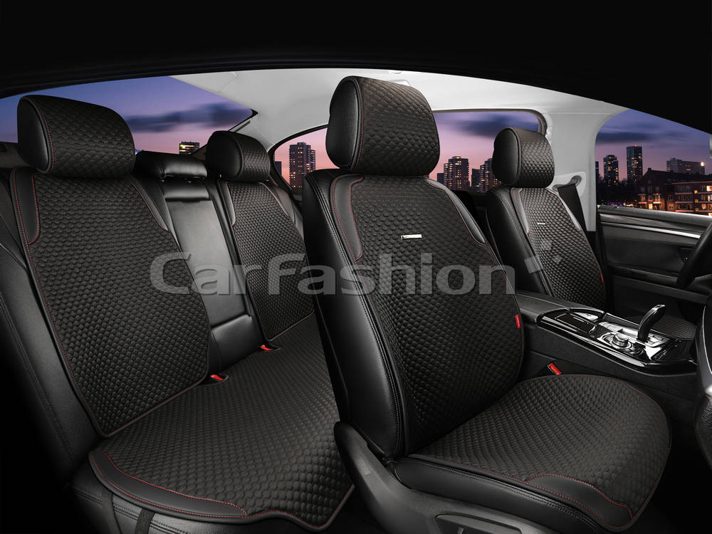 Комплект накидок на весь салон PLUS 2D SLEEK, материал полиэстер + экоКожа, цвет черный, строчка красная, кант черный