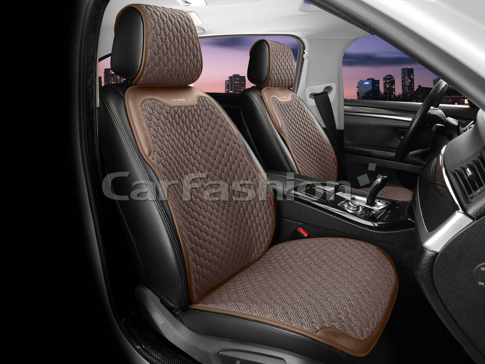 Накидки на передние сиденья 2D TERRA FRONT, материал твид + экоКожа, цвет коричневый, строчка коричневая, кант коричневый
