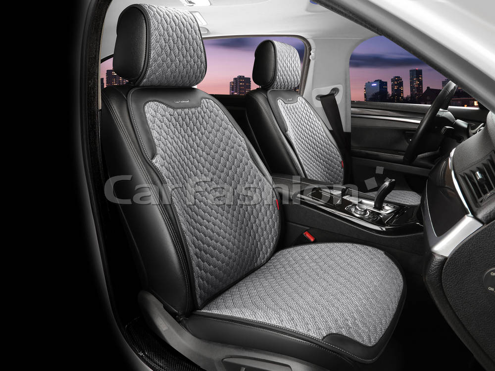 Комплектация: 2 передние спинки, 2 передних сиденья, 2 раздельных подголовника. Дышащая ткань TWEED - плетеный материал. Отделка экокожа. Противоскользящая подклада. Поролон 12мм. Легкая самостоятельная установка.