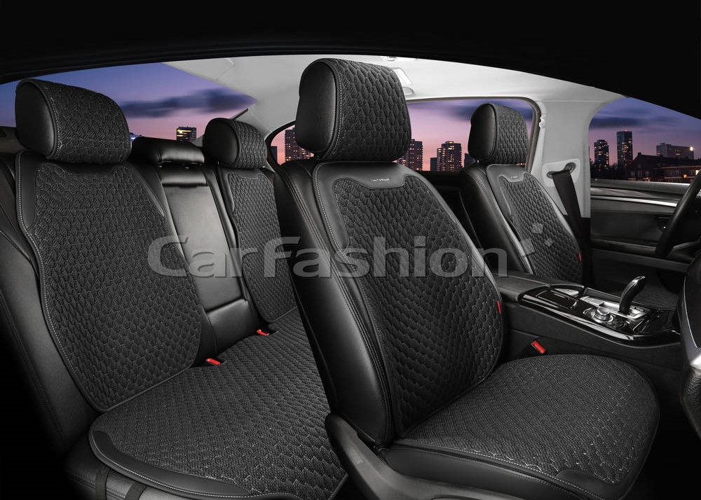 Комплектация: 2 передние спинки, 2 передних сиденья, 1 цельный задний диван, 2 задние спинки, 4 раздельных подголовника. Дышащая ткань TWEED - плетеный материал. Отделка экокожа. Противоскользящая подклада. Поролон 12мм. Легкая самостоятельная установка.