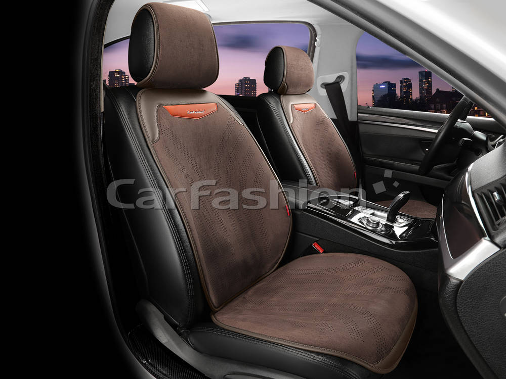 Накидки на передние сиденья 2D TRIO FRONT, материал замша + экоКожа, цвет коричневый/коричневый/оранжевый/коричневый