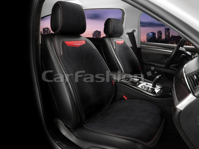 Накидки на передние сиденья 2D TRIO FRONT, материал замша + экоКожа, цвет черный/черный/красный/красный