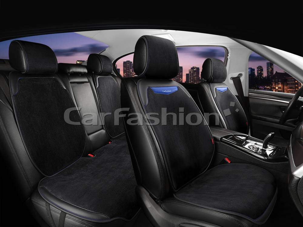 Комплект накидок на весь салон PLUS 2D TRIO, материал замша + экоКожа, цвет черный/синий/синий/черный