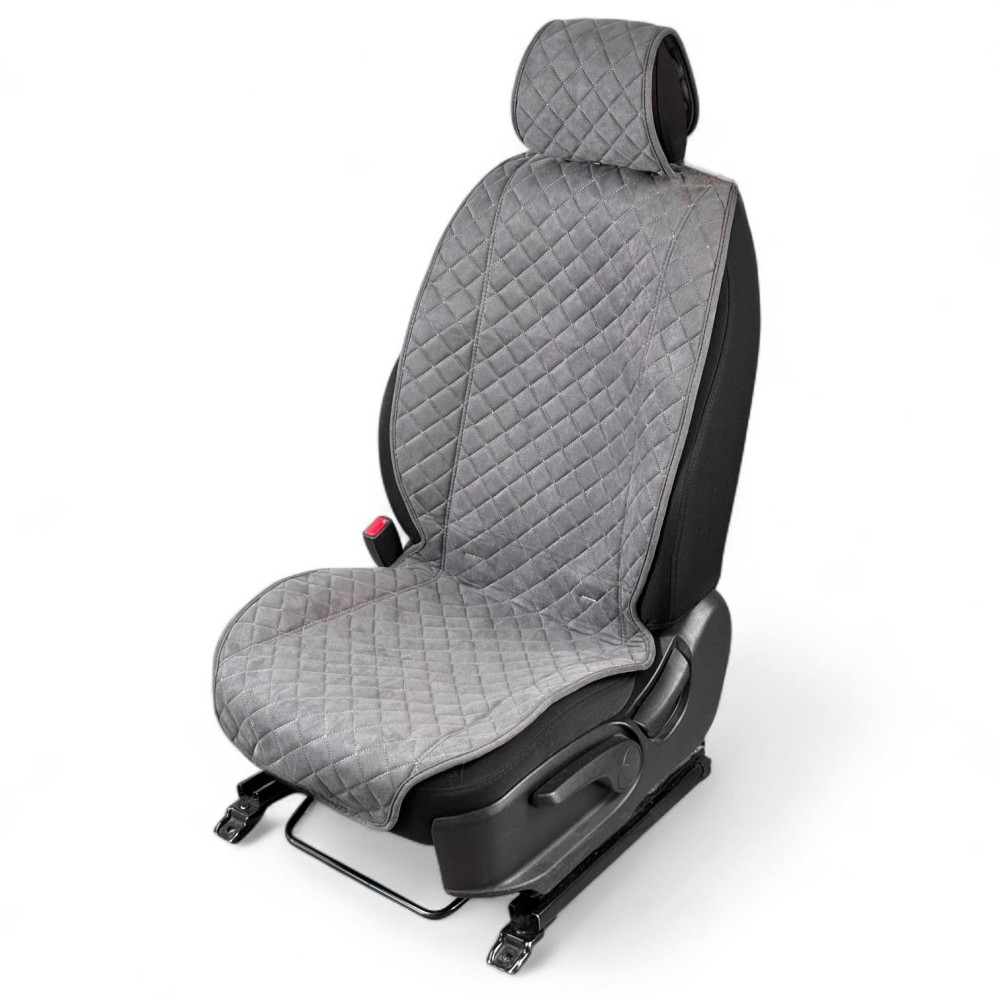 Накидки на передние сиденья FRONT MAX L, ткань алькантара (Италия), широкая модель, цвет серый, строчка серая, кант серый