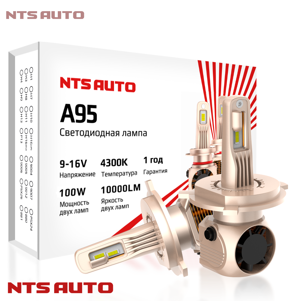 Светодиодные лампы H4 A95 CANBUS 4300K 10000Lm 100W 9-16V