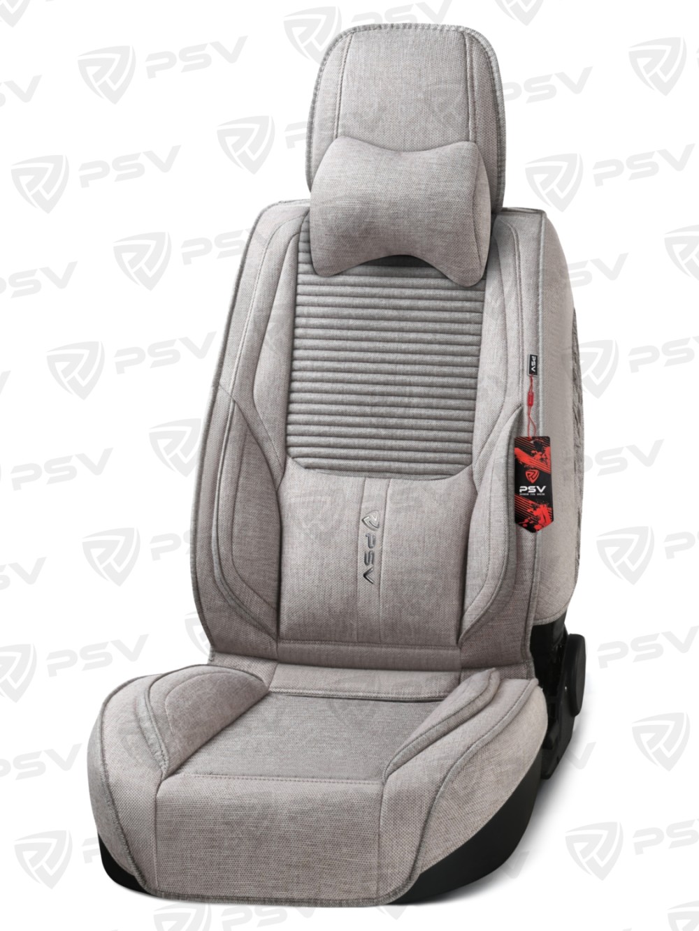 5D дизайн - полностью закрывают бока и заднюю часть спинки передних сидений. Карманы на спинках передних сидений. Материал - лен. Поролон - 15 ММ. Поясничная и боковая поддержка. Лаконичный и современный дизайн. Комплектация - на весь салон. Упаковка - фирменная сумка PSV и подушки для шеи в комплекте.
