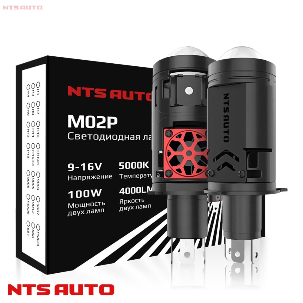 Светодиодные лампы H4 M02P 5000K 4000Lm линза 100w 9-16v