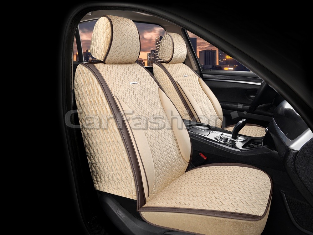 Накидки на передние сиденья FRONT SHEVRON, Велюр + ЭкоКожа, цвет бежевый/коричневый/бежевый/коричневый