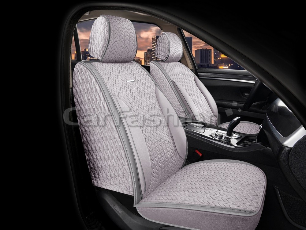Накидки на передние сиденья FRONT SHEVRON, Велюр + ЭкоКожа, цвет серый/серый/т.серый/т.серый