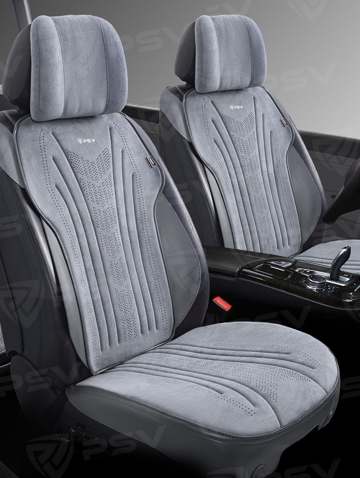 Накидки на передние сиденья TORNADO 2 FRONT, материал алькантара, цвет серый, строчка серая, кант серый